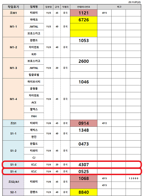 11.3(월) | 11.4(화) | 인천 | 11.7(금) 통관 작업 예정 |