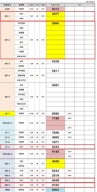 11.12(수) | 11.13(목) | 인천 | 선적 대기 |