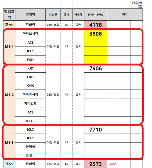 해운 | 인천 | 2.4(수), 5(목) 입항건 통관 작업 예정 | 2.3(화), 4(수) 중국 출고 | - |